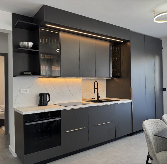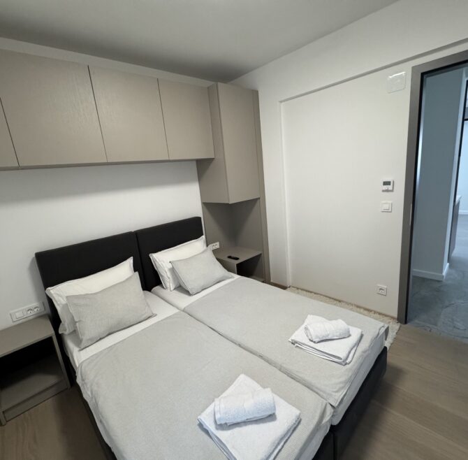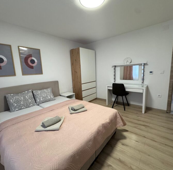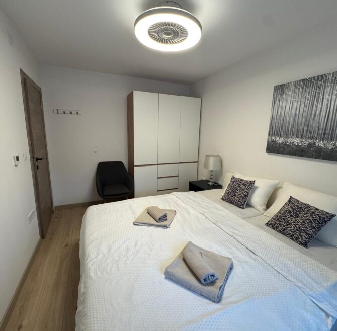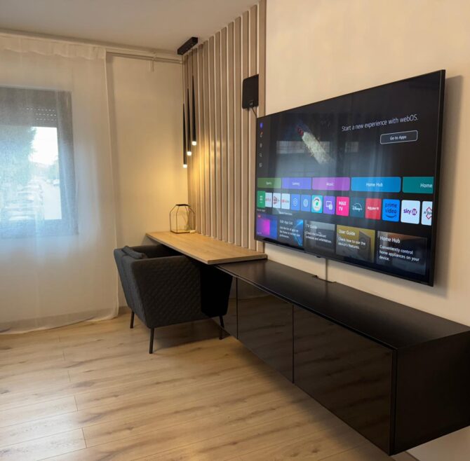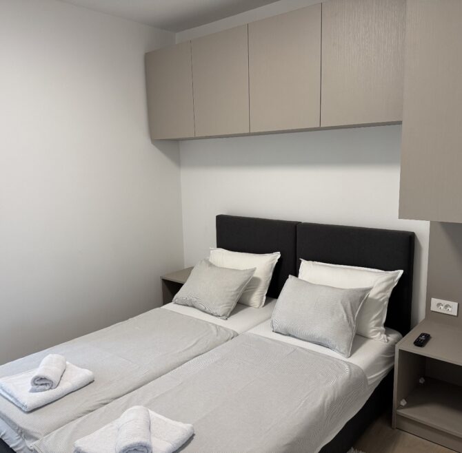 Dobrodošli u naše moderno uređene apartmane. Svaki apartman opremljen je pametnim televizorom, klimom i brzim internetom, pružajući sve što vam je potrebno za ugodan i bezbrižan boravak.