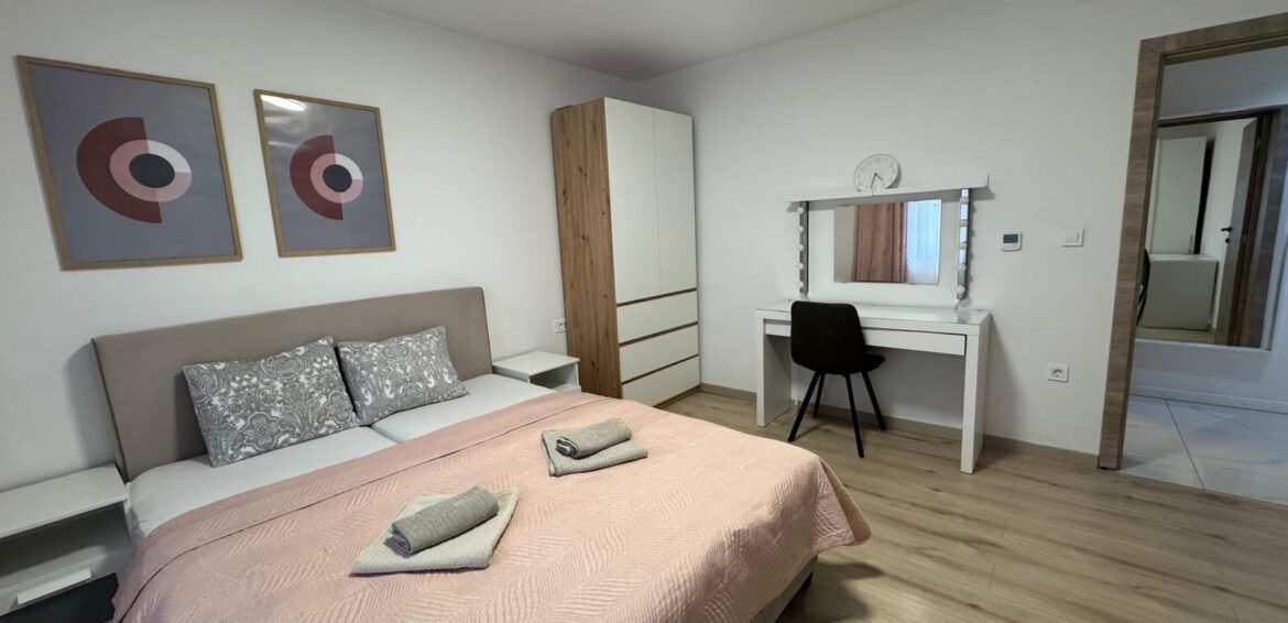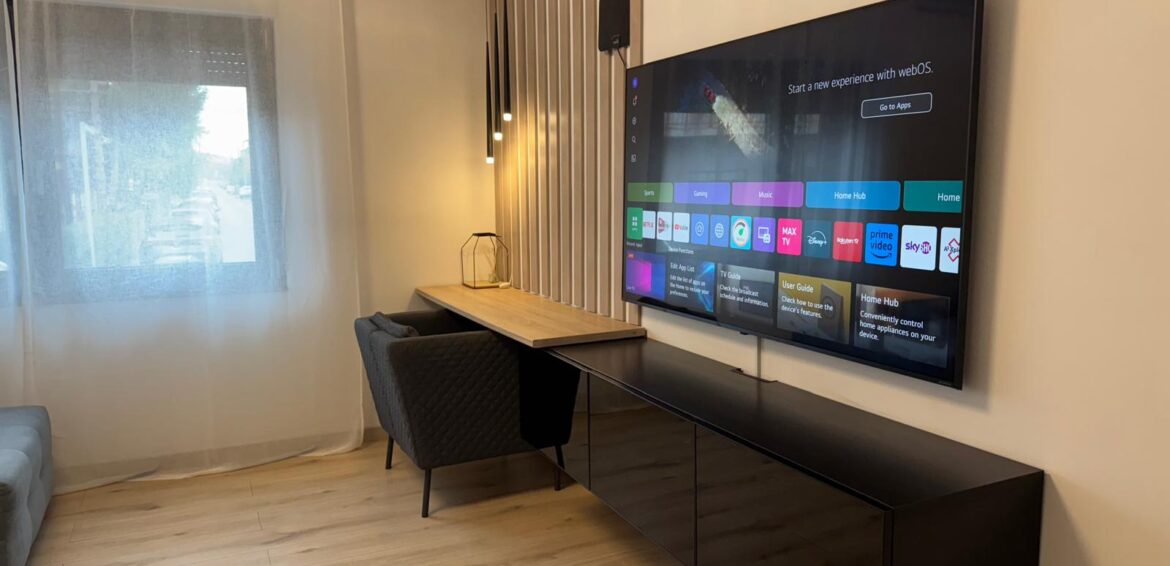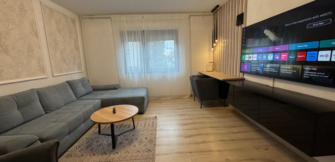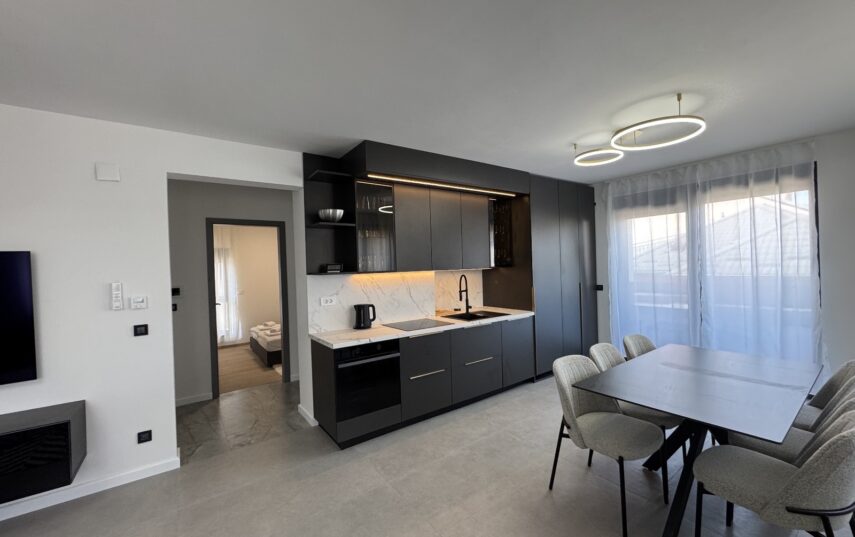 Moderan apartman s bogatim sadržajem – klima uređaj, smart TV, podno grijanje, Wi-Fi i potpuno opremljena kuhinja.